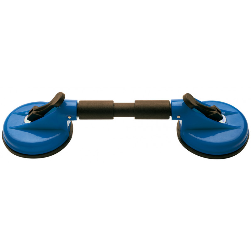 - Je vhodná na prenášanie skla. Prísavka pracuje prisatím dvoch vankúšov na sklo a vytvorením vákua. Vankúše tak bezpečne uchytia sklo.