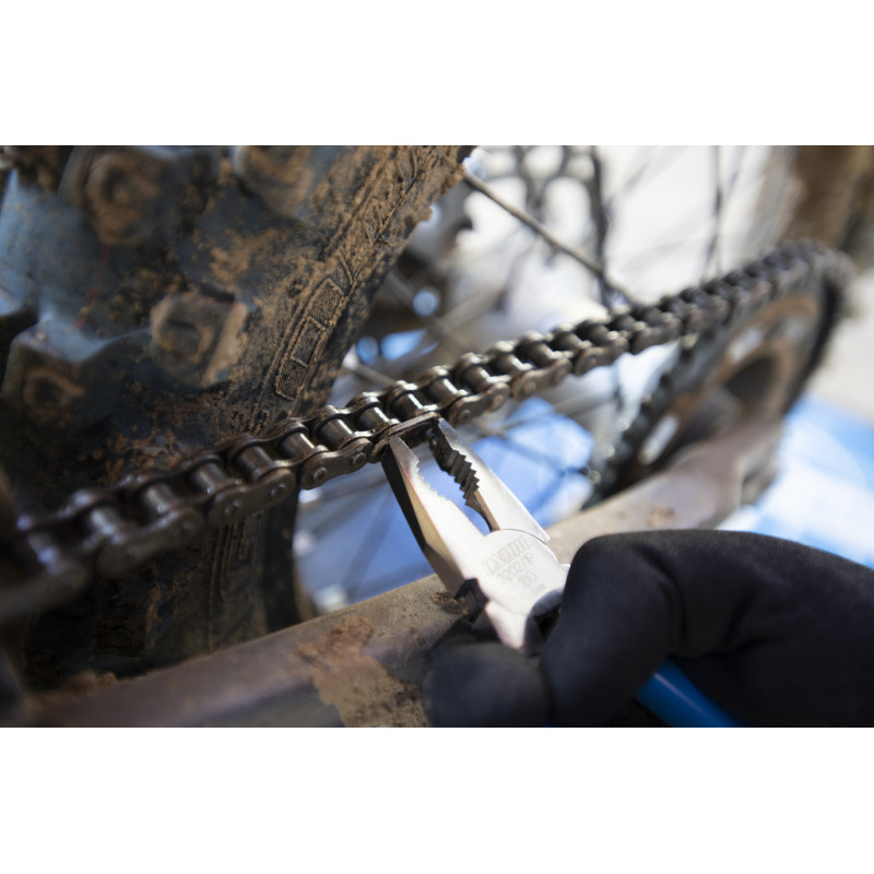 - Kliešte umožňujú montáž a demontáž spony spojovacieho článku na reťazi motocykla.