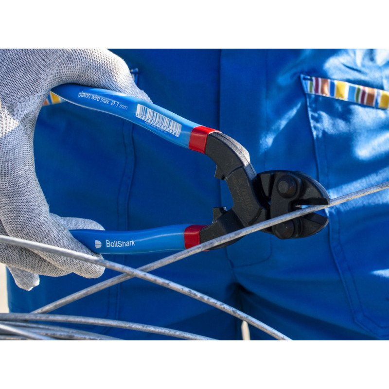 - Tieto ultrasilné kliešte sa používajú na jednoduché rezanie kovového drôtu vrátane tvrdených a temperovaných zliatin a ďalších extrudovaných kovov. Sú ergonomicky navrhnuté tak, aby pôsobili maximálnou silou, pričom sú ľahké v rukách. Kované z vysoko uhlíkovej ocele s indukčne tvrdenými reznými hranami, kliešte BoltShark môžu prerezávať až 6 mm mäkký drôt, 4 mm tvrdej ocele a 3,6 mm tvrdeného klavírneho drôtu alebo oceľovej pružiny. Okrem drôtu, kliešte Boltshark rýchlo a čisto prerežú klince, skrutky a nity.