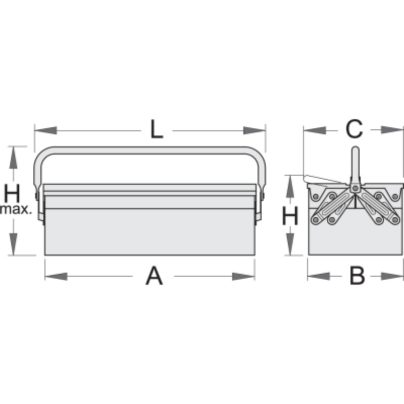 | Katalógové číslo | A | B | C | L | H | H max. | Váha | Priem. Balenie | Cena s DPH |
