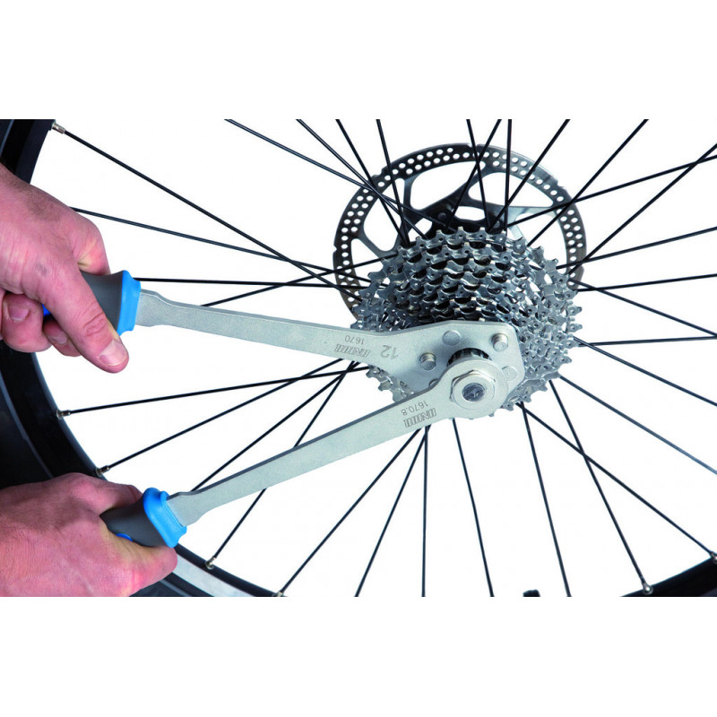 - Kľúč je možné použiť pre Shimano, SRAM, Sun Race, Suntour a iné kazety. Pevná rukoväť umožňuje ľahké použitie, pretože nie je potrebné žiadne iné náradie na uchytenie kľúča.