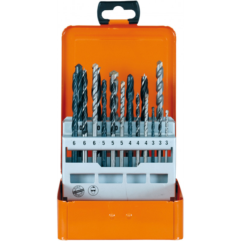 - Obsah balenia: 6 vrtákov HSS-G DIN 338 typ N 3, 4, 5, 6, 8, 10 mm / 6 vrtákov do muriva 3, 4, 5, 6, 8, 10 mm / 6 vrtákov do dreva 3, 4, 5, 6, 8, 10 mm