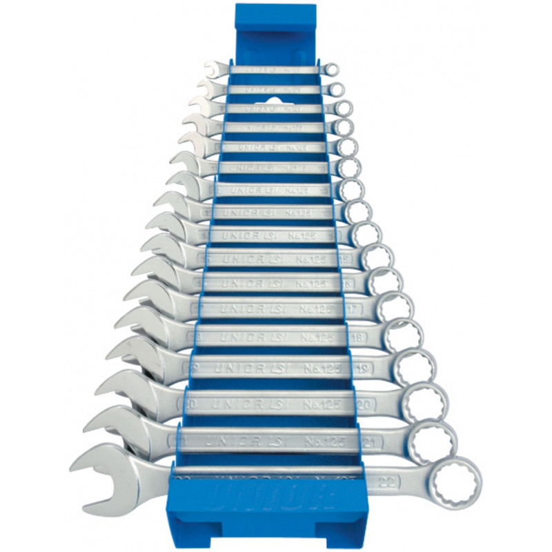 Sada kombinovaných, krátkych kľúčov v kovovom stojane