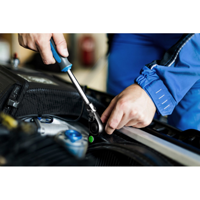 - Flexibilná račňa umožňuje prácu s ohybom rukoväte max. 90° s 22, 5° ohybom.
