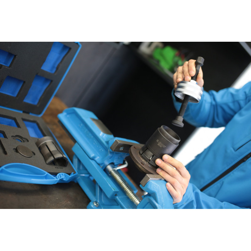 - Ľahká a rýchla demontáž vnútorného ložiska z náboja kolesa. Náradie je navrhnuté na demontáž bez rizika poškodenia a bez potreby ďalších nástrojov ako sú pilníky, kladivá ... Pre priemery ložísk od 40 do 60mm. Náradie je určené pre : Audi, BMW, Ford, Mercedes-Benz, Peugeot, Renault, Toyota, VW atď.