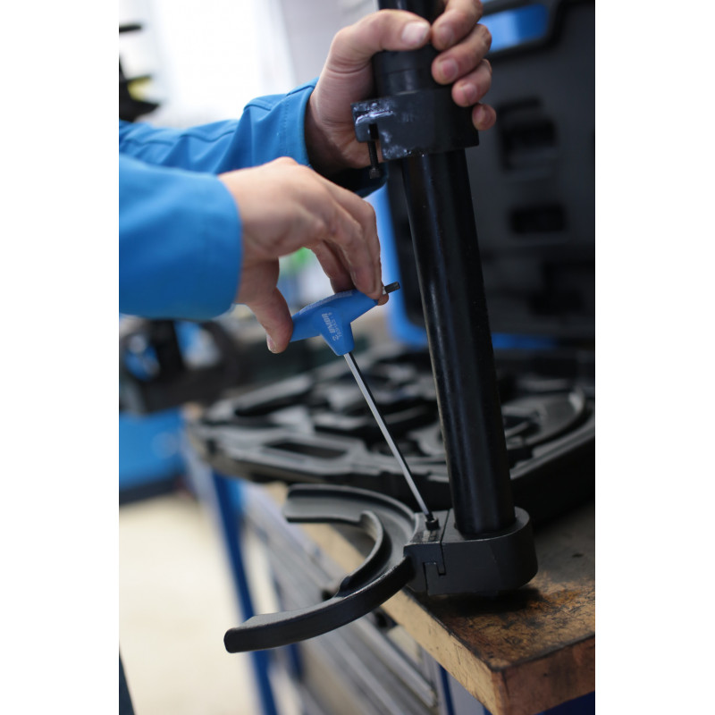 - Stláča pružiny na tlmičoch Mc Pherson. Pretože počet verzíí tlmičov sa stále zväčšuje má toto náradie 3 rozpery, ktoré pokryjú takmer všetky typy rozpier.