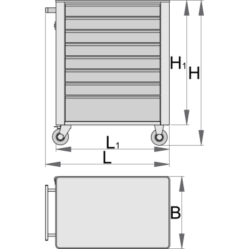 - Základné rozmery s rukoväťou a kolesami L 760 x W 440 x H 895 mm