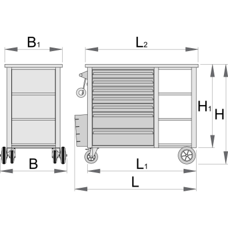 Materiál: premium plus oceľový plech Slepé matice na uchytenie náradia sú na vozíku Jedny zaklápacie..