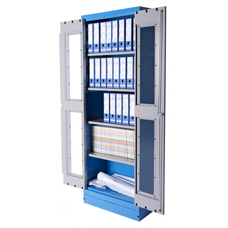 - Skriňový organizér na dokumenty je ideálnym riešením pre systematicky organizovanú dokumentáciu, bezpečne uloženú za priehľadnými dvierkami pre lepšiu viditeľnosť. Disponuje štyrmi nastaviteľnými policami a možnosťou široko otvorených dverí. Jeho steny sú perforované, čo umožňuje inštaláciu dodatočného príslušenstva, ktoré priestor dodatočne optimalizuje.