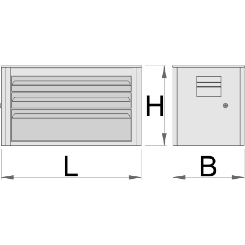 - 3 zásuvky (2 x L 560 x W 275 x H 70 mm, 1 x L 560 x V 315 x H 150 mm)