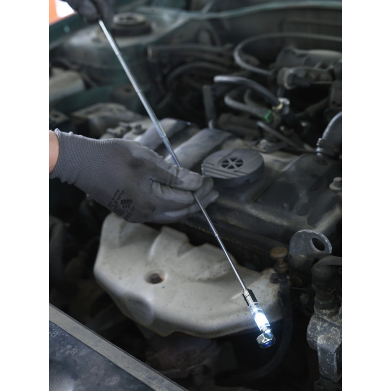 - Tento zberač je určený na zdvihnutie malých kovových častí. Má špeciálne svetlo, ktoré sa aktivuje ihneď po vysunutí.