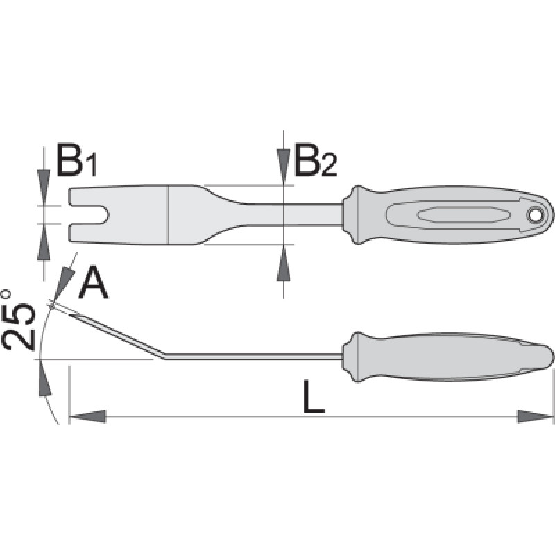 - Tento nástroj je používaný na vyťahovanie upínacích sponiek, uvolnenie kolíkov a rôznych čalúnení.