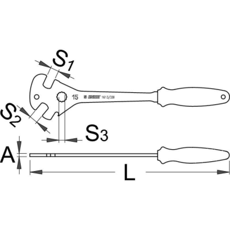 Račňová hlava Použitie: jednosmerné udané na rukoväti Kľúč pracuje v oboch smeroch Pre uťahovanie ľa..