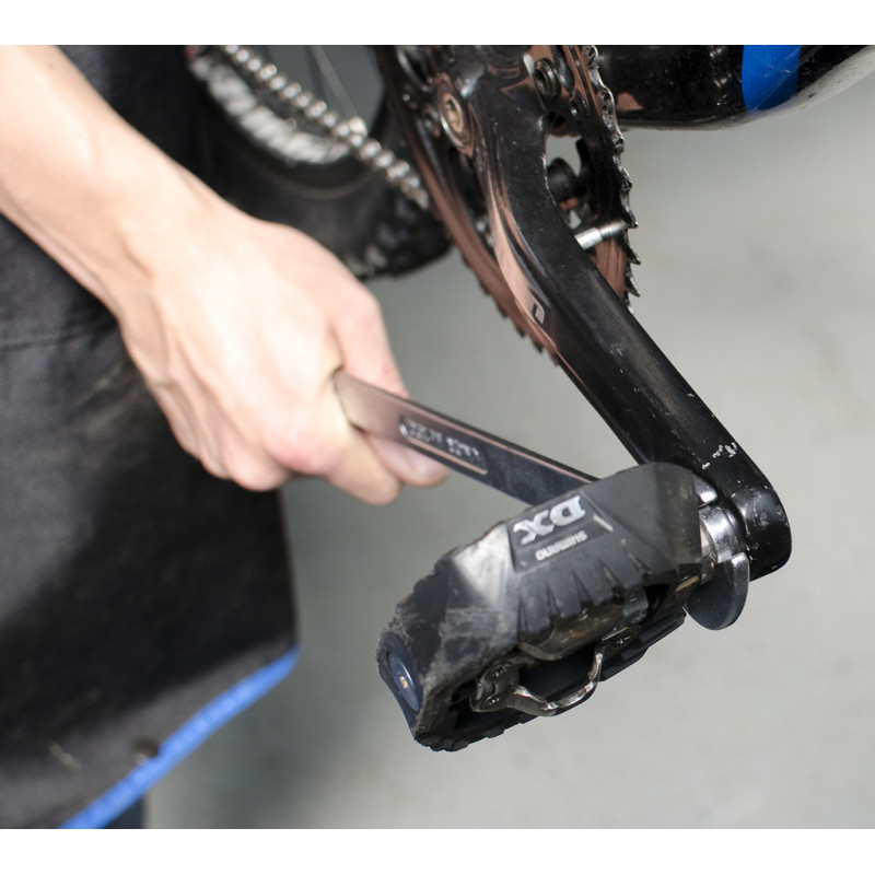 - Kľúč na pedále je určený na rýchlu, jednoduchú a efektívnu montáž a demontáž pedálov. Extrémne dlhé a tenké telo a špeciálne vidlice umožňujú perfektné prispôsobenie pedálom. Vyššia rýchlosť a bezpečnosť zatiahnutia a odtiahnutia pedálov ako u bežných vidlicových kľúčov. Kľúče sa vyrábajú v 3 rozmeroch: 15x15 na pedále a 15x17 a 15x9/16" na náboje.