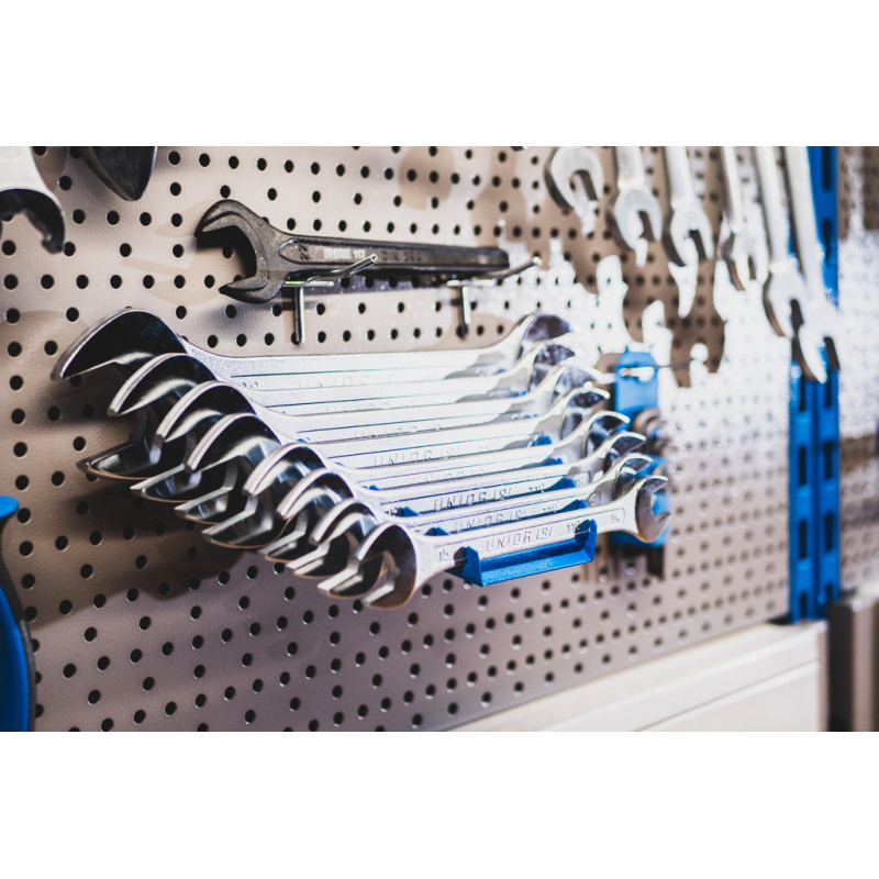- Do držiaka je možné uložiť 8 ks otvorených kľúčov alebo 8 ks očkových kľúčov (do rozmeru 24 mm)