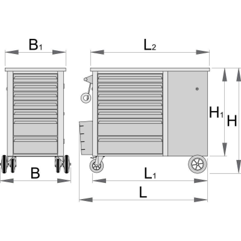 - 7 bočných zásuviek (5x L 374 x W 364 x H 70 mm, 2x L 374 x W 364 x H 150 mm)