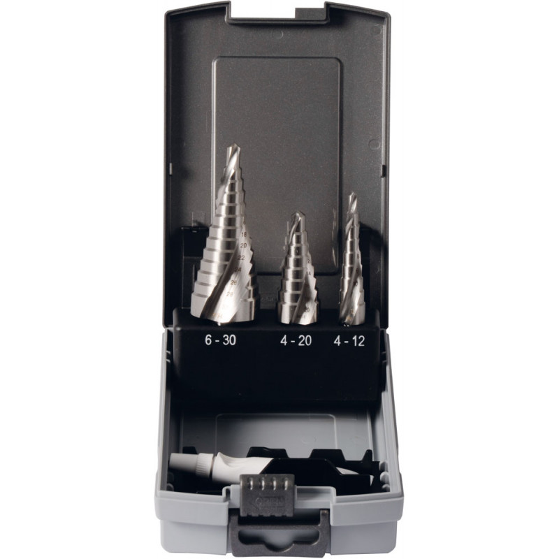 - Viacstupňové vrtáky so špirálovou drážkou, na vŕtanie a odhrotovanie valcových otvorov