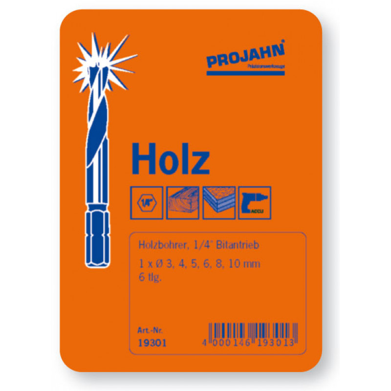 6 - dielna sada špiráľových vrtákov do dreva so 6 - hranom